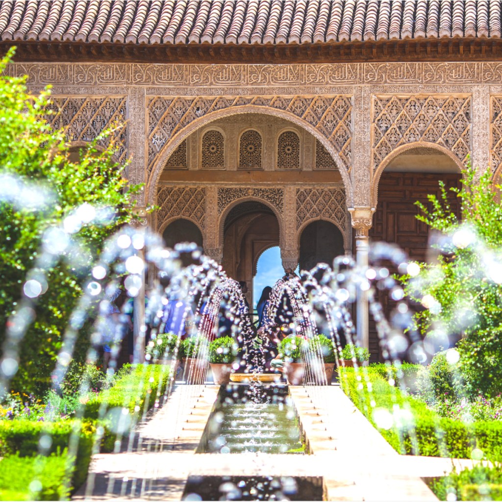 El Patio de los Arrayanes, el famosísimo de los Leones, la Sala de los Reyes concebida para impresionar en la recepción de las embajadas extranjeras o la Sala de las Dos Hermanas, probablemente la más bella de todo el recinto, son también algunas de las partes más destacadas de tu visita a La Alhambra. No podemos terminar nuestra visita sin adentrarnos en la Torre de Comares o el pequeño Palaciol Partal, para terminar en los Jardines del Generalife donde los sultanes se trasladaban en los meses de más calor.