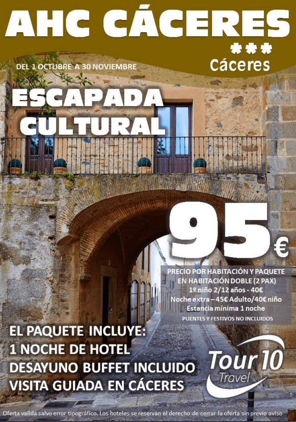 Hemos preparado para ti, un paquete cultural que incluye noche en hotel de 3* con desayuno buffet y visita guiada por las historias y leyendas de la ciudad. Por 95 euros para dos personas, puedes disfrutar de esta atractiva escapada de fin de semana, con posibilidad de añadir, si se desea, noches extras.
