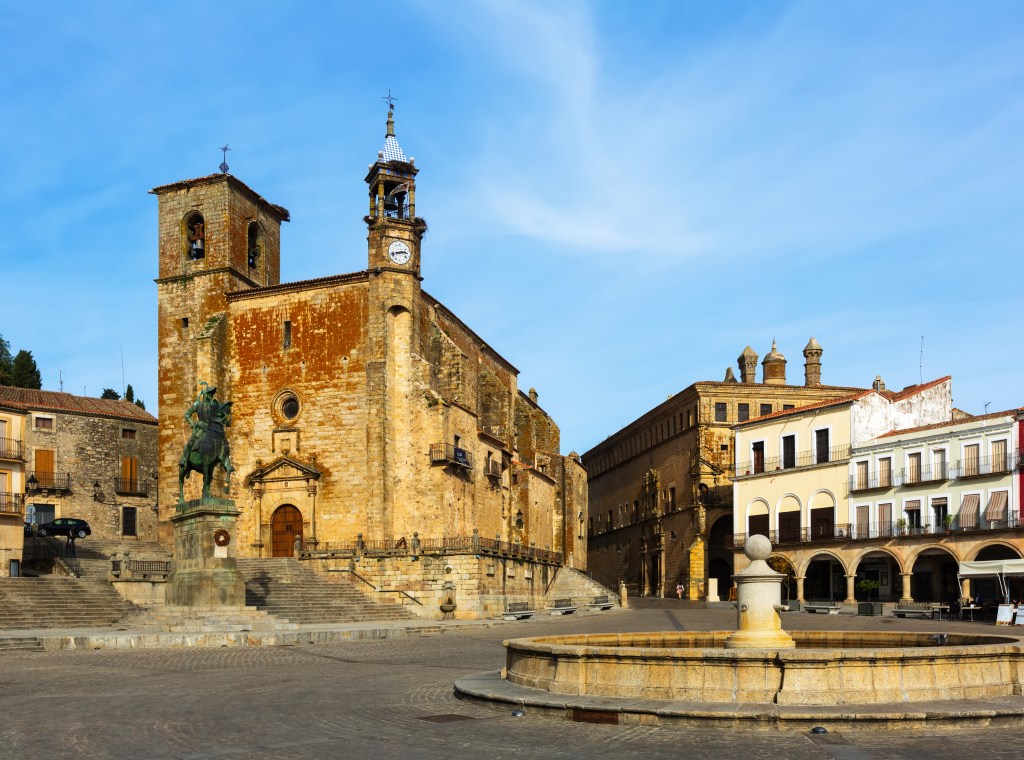 Trujillo. Más cercano a la capital y más factible de realizar esta visita, este pueblo posee un llamativo castillo medieval que se erige en una colina dominando al municipio. En la Plaza Mayor de Trujillo, de espacio renacentista, se alza una estatua ecuestre en honor de Francisco Pizarro, orihundo de esta localidad. En su Casa Museo, se puede ver el relato de su vida.