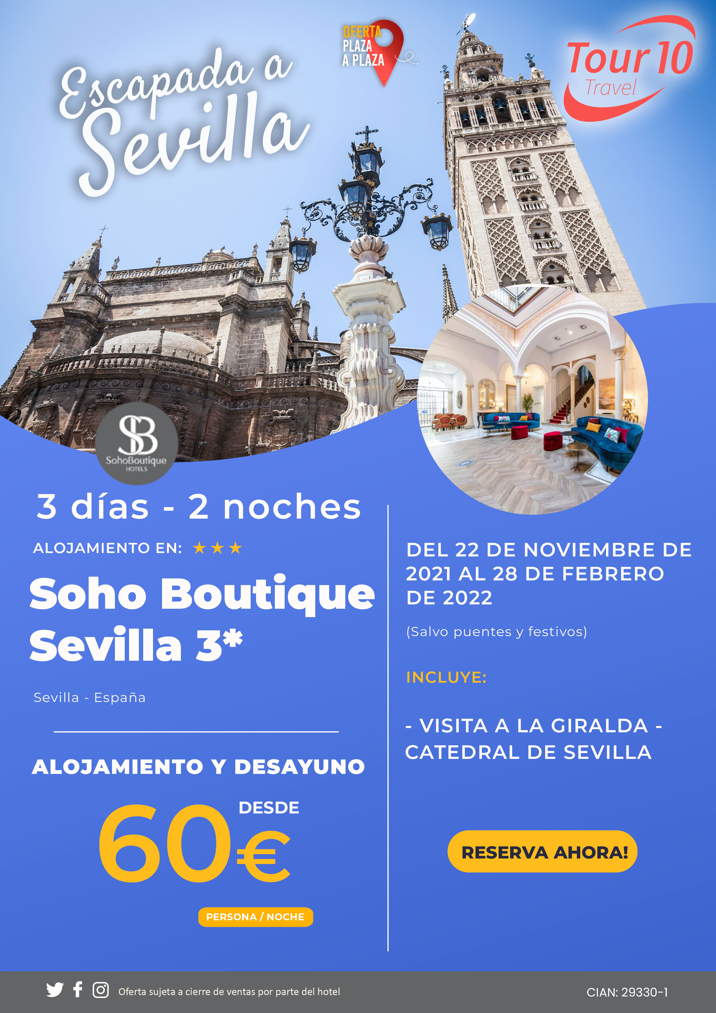 3 días-2 noches en Sevilla con alojamiento y desayuno en hotel Soho Boutique Sevilla 3* y entradas incluidas a la Giralda desde tan solo 60 euros por persona.