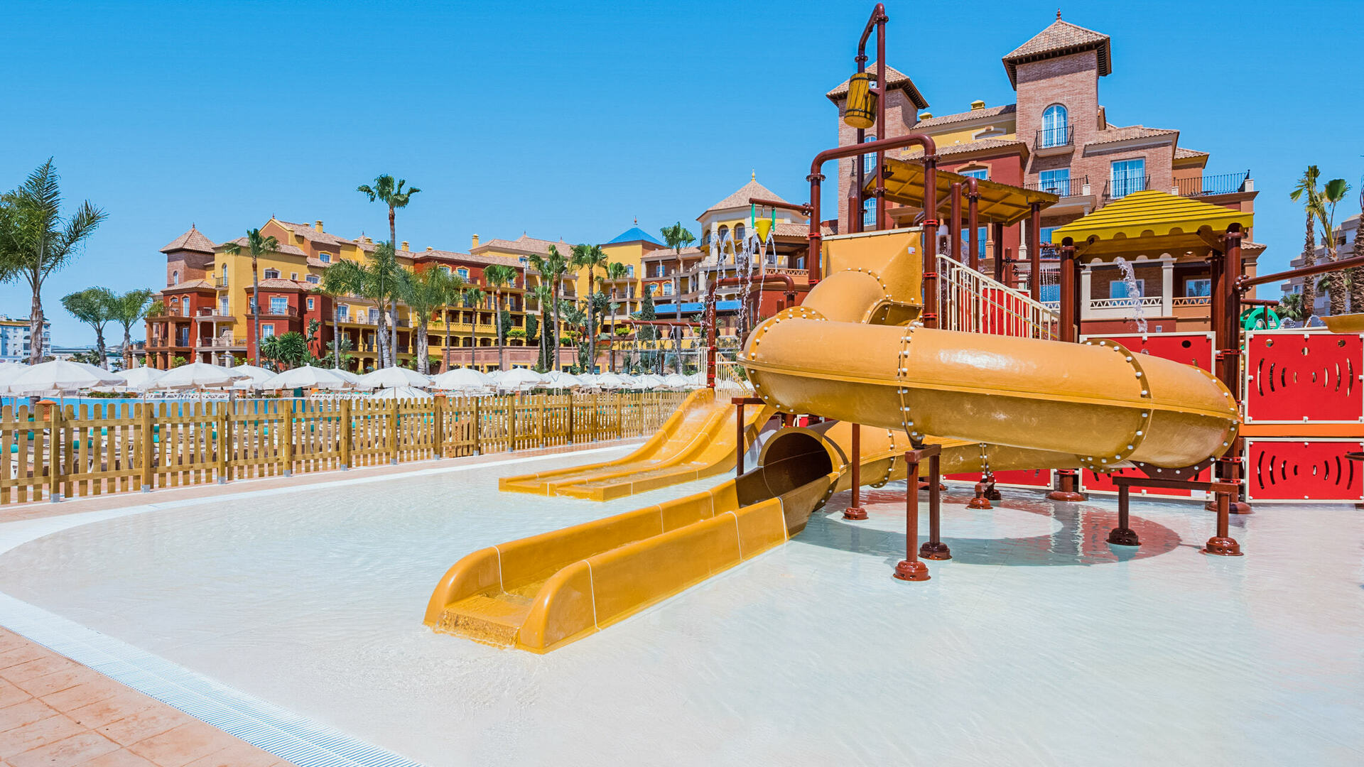 Este establecimiento cuenta con una perfecta ubicación entre Marbella y Estepona. Entre sus instalaciones encontramos un Splash Park, parque infantil y la experiencia de Katmandu Adventures con clubs infantiles para todas las edades desde los 5 años (solo en temporada) además cuenta con cuatro piscinas descubiertas (dos para niños),