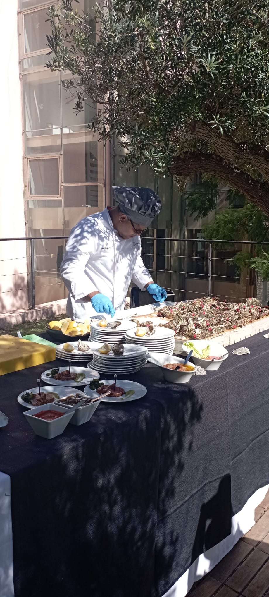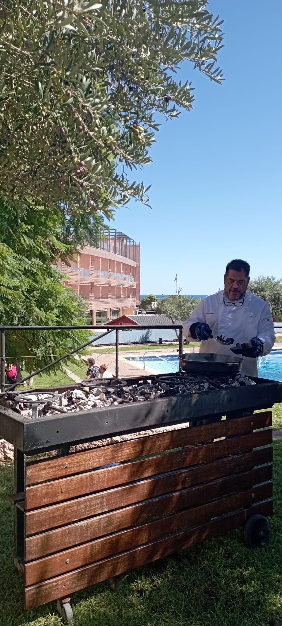 Ya de vuelta al hotel compartimos un excelente almuerzo gourmet con cocina en vivo por los chefs de todos los hoteles OHTELS de Salou y Les Oliveres con productos locales, amenizado con música Dj y tardeo que duró hasta la puesta de sol .