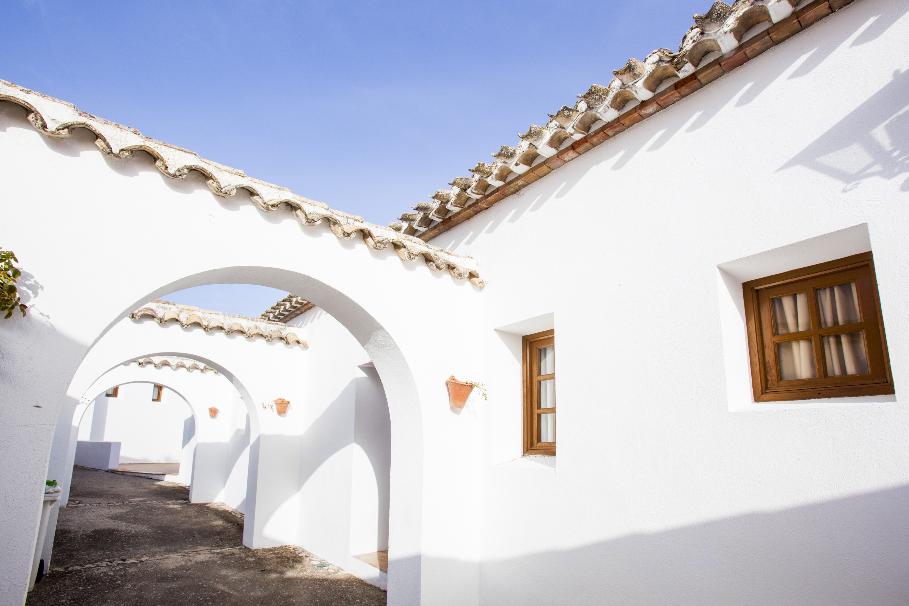 El edificio principal es una joya arquitectónica con techos abovedados y arcos de medio punto. Aquí encontrarás servicios comunes y habitaciones con vistas al pueblo y las sierras circundantes. Las 38 villas se distribuyen como un típico pueblo andaluz, con calles sinuosas, plazoletas y jardines.